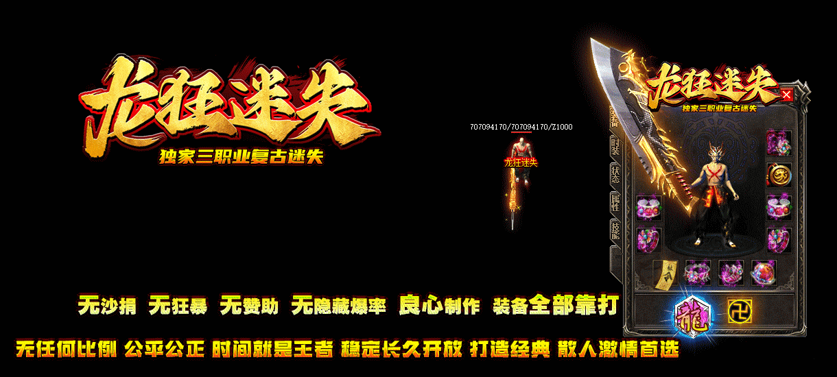 本服定位长期复古特色,所有装备,BUFF时装全部靠打怪爆,无合成!